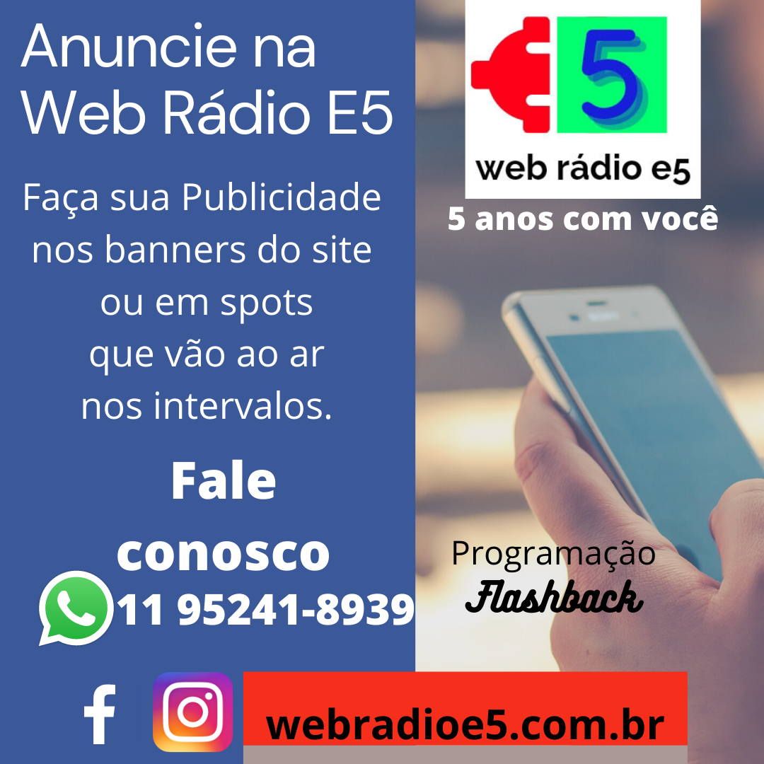 Aqui na Web Rádio E5 de Jundiaí-SP você divulga seu produto, marca ou empresa na melhor programação Flashback 24 horas da internet ou nos banners disponíveis no site.